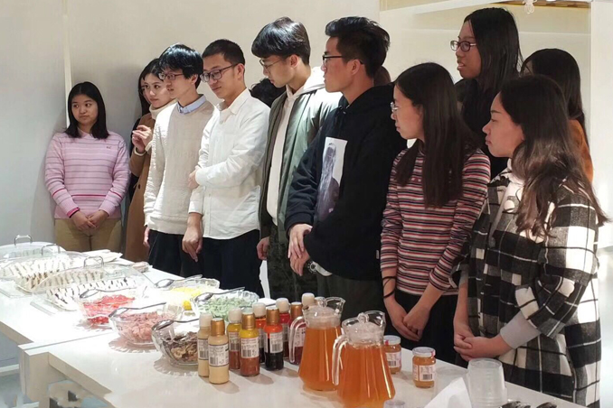师生一行抵达丘比公司后,门口自动穿鞋套的机器、标志性的巨大的丘比娃娃立即吸引了大家的目光。之后,厂长介绍了公司的概况和丘比的各类产品,并带领大家参观生产现场。透过玻璃防菌窗,师生们看到了平时所熟悉的蛋黄酱、果酱是如何被生产出来的,叹服于现在工厂所具备的高科技技术。为了迎合中国人把调味酱储藏在罐子里的习惯,丘比公司把在日本使用的软塑料瓶包装改成了玻璃瓶装,并研发出诸如大拌菜沙拉汁和香辣沙拉汁等很多适合中国人口味的沙拉汁。可见丘比公司为入乡随俗所做的努力。此外,丘比公司非常重视通过举办各种文化活动增强公司的凝聚力。他们在工厂的走廊墙壁上贴了很多活动的照片和员工旅行的合影。从员工们脸上洋溢的笑容,我们也可以感受到员工对公司的热爱。