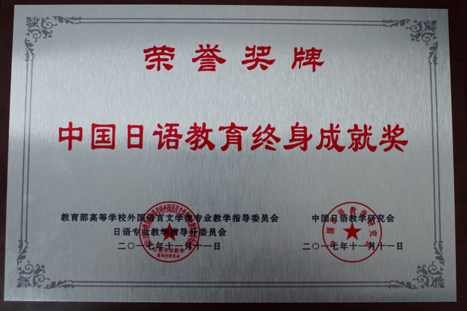 2017年11月11日,教育部高等学校外国语言文学类专业教学指导委员会日语专业教学指导会委员会、中国日语教学研究会评选出了“中国日语教育终身成就奖”和日本学领域第一届学术论文年度学会奖获得者。