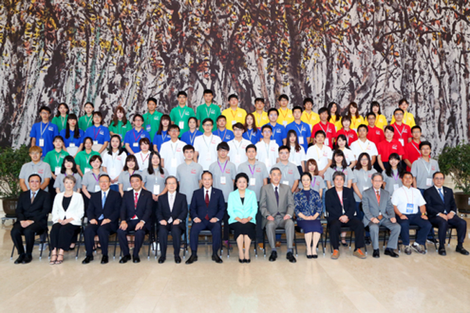 我校日语系学生与两国学生代表共同受到了刘延东的亲切接见并与大会嘉宾合影留念。(日语系)