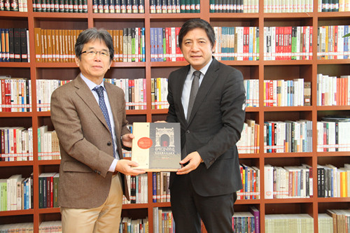 1月8日上午,日本庆应大学综合政策学部部长河添健访问我校。校长彭龙会见了河添健一行。