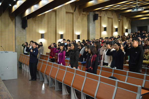 首先,许建农老师为日语系举行了“蓝色盾牌”禁毒志愿者大队的授旗仪式,随后主讲了禁毒防艾知识讲座,播放了触动人心的教育片《与死神共舞》,并带领日语系全体同学宣誓成为高校禁毒志愿者,为禁毒工作做出贡献。