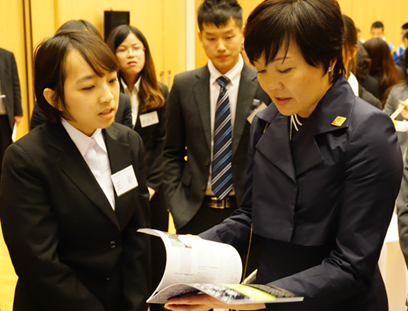 致辞结束以后,安倍昭惠夫人来到学生当中展开了亲切的交流。当得知我们是北外日语系的学生后,她对同学们流利的日语大为赞叹,并询问了我们学习日语的动机、对中日关系的看法等,同学们不仅纷纷各抒己见,还询问了安倍夫人访华感想、兼顾家庭与事业的秘诀等,交流气氛轻松愉快。