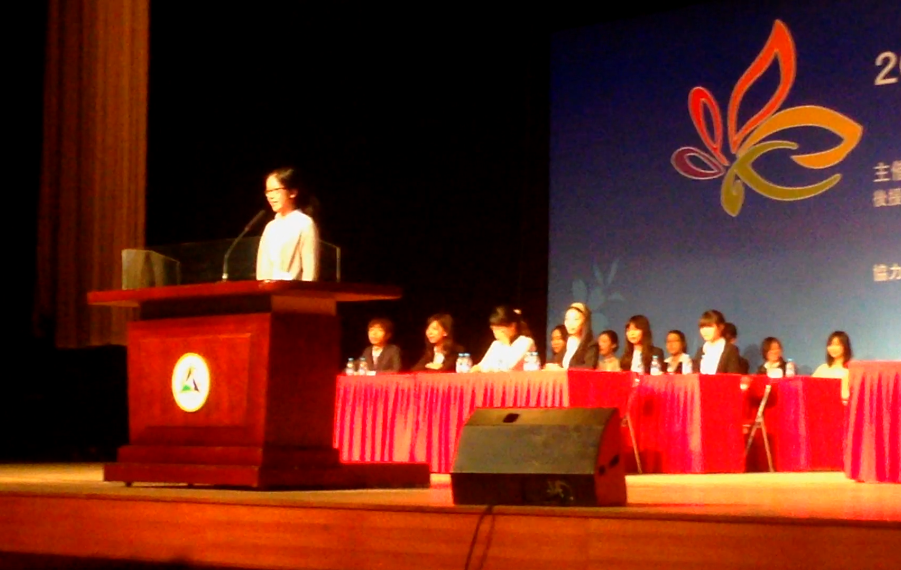 “大中物产杯日语演讲比赛”是京津地区最有影响力的大型比赛,本届比赛更是吸引了来自北京大学、北京第二外国语大学、南开大学等21所高校的近两百名日语专业学生参赛。比赛在一片热烈的氛围中开始。出场顺序为最后一号的杨亦沉同学不骄不躁,沉着冷静,饱含真诚的感情,以自己离开上海到北京来上大学为例,讲述了在旅途中发现新的自我的历程。离家求学的经历引起了在场大学生的共鸣。在回答问题的环节,对于你喜欢哪一部日剧及你认为今后有什么在等着你这两个问题,杨亦沉同学也做出了精彩的回答。在比赛开场已三个多小时之后,杨亦沉同学用她优美的发音,流利的回答与率真的感情,成功赢得了评委的心,博得了现场的阵阵掌声。赛后杨亦沉同学在采访中表示觉得自己非常幸运,并表示有机会的话想去日本奈良看鹿。
