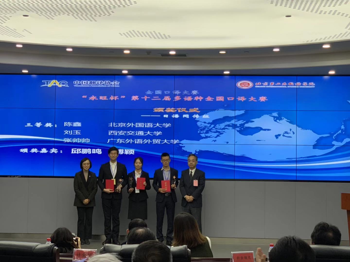 我院18级口译专业(MTI)的杜欣雨、陈鑫以出色的表现分别取得交传组第三名、同传组第四名的佳绩。