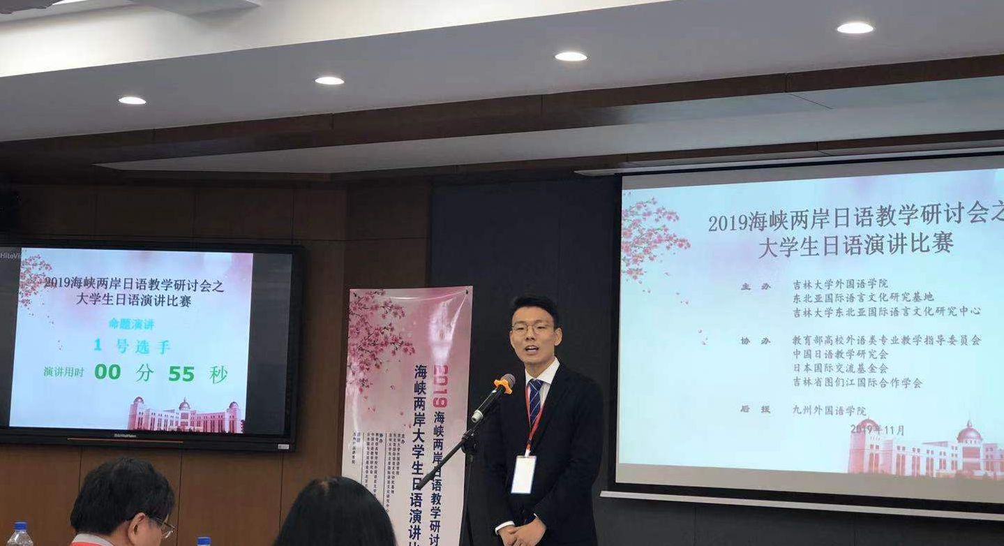 2019年11月8日,“2019海峡两岸大学生日语演讲比赛”在吉林大学举行。伟德BETVLCTOR194617级学生周戈取得大赛第三名的佳绩,高木立子老师获优秀指导教师奖。