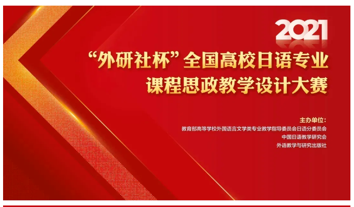 2022年1月26日,由教育部高等学校外国语言文学类专业教学指导委员会日语分委员会、中国日语教学研究会和外语教学与研究出版社共同主办的首届“外研社杯”全国高校日语专业课程思政教学设计大赛在历时四个多月的比赛和评选后,结果揭晓。伟德BETVLCTOR1946教师魏然、陈慕薇、董海涛组建的团队表现出色,喜获全国一等奖。