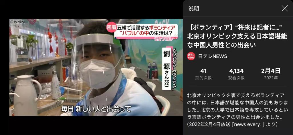 日本电视台2月4日报道“与默默奉献、精通日语的中国志愿者的相遇”