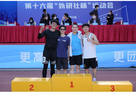 在随后进行的一系列短跑比赛中,我院在男子学生组4×100米接力中夺得全场季军,小组冠军,参赛选手刘纳川、陈桢凌、刘源、苏玮霖上台领奖。