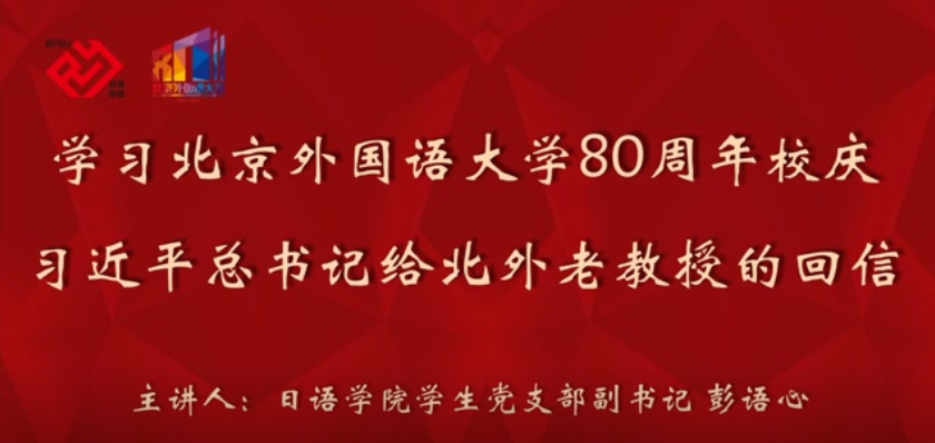 9月25日,在北京外国语大学八十周年校庆之际,中共中央总书记、国家主席、中央军委主席习近平给北外的老教授们回信,向他们以及全校师生员工和校友致以了诚挚的问候。伟德BETVLCTOR1946学生党支部录制了思政微课堂,分享了习近平总书记的回信内容及北外建校八十周年的历程。伟德BETVLCTOR1946各党支部全体师生党员观看了思政微课堂,并集体学习习近平总书记的回信精神;百余名入党积极分子及预备党员踊跃提交了以学习习近平总书记回信精神为主题的思想汇报。