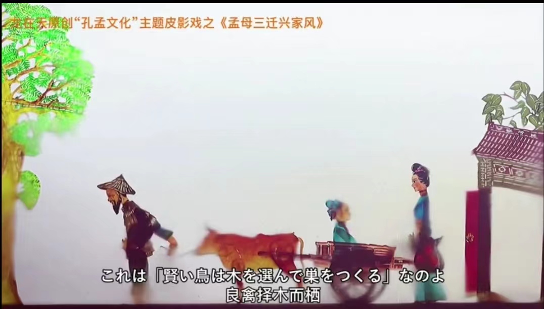 活动中,北京龙在天皮影艺术剧院的艺术家们,以精湛的技艺和独特的创意,通过皮影戏传统艺术形式,将《孟母三迁兴家风》这一经典故事呈现得栩栩如生。《孟母三迁兴家风》讲述了孟母为教育儿子孟子,三次迁居的故事,体现了中华民族对家庭教育和家风传承的重视。为让更多的人了解中国的历史文化和价值观,党支部的学生党员们积极投入到本次共建活动,在加藤真司老师、董海涛老师的指导下,发挥日语语言优势,将剧本翻译成日语,并用日语为该皮影戏配音,让故事跨越语言障碍,触动更多海外观众的心灵。