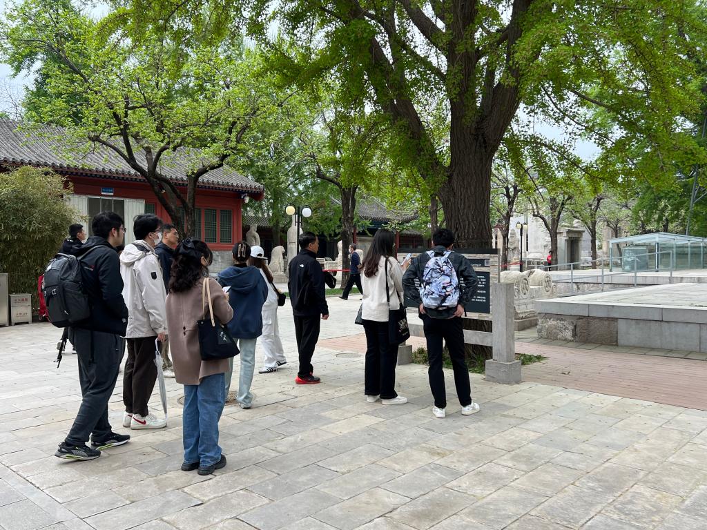 踏进大门,代表性建筑真觉寺金刚宝座塔便映入眼帘,同学们纷纷驻足观看。随着参观的不断深入,众多寺庙碑、诰封碑、会馆碑等石刻展品进入视野,或质朴恢弘,或荡气回肠,或庄严大气。无论是独立造型还是多件组合,这些石刻作品展示了古人独特的匠心与智慧,承载着中华文明的历史,构成了人类文明的重要组成部分。