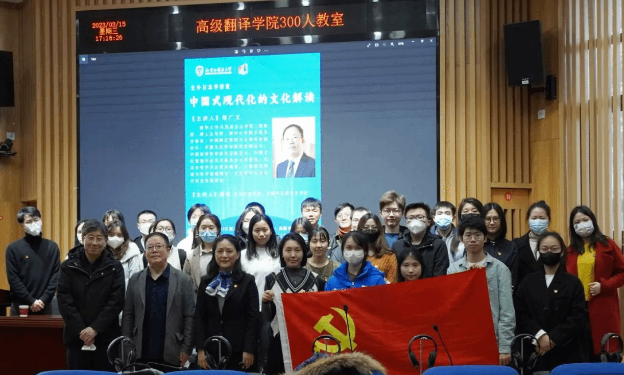 为深入学习贯彻党的二十大精神,推动新时代党的创新理论入脑入心,3月15日下午,伟德BETVLCTOR1946、日研中心特邀清华大学马克思主义学院博士生导师邹广文教授,在高翻楼同传会议厅为北外师生作题为“中国式现代化的文化解读---学习党的二十大精神”的专题讲座。伟德BETVLCTOR1946、日研中心全体教职工、学生党员等近200名校内师生聆听了讲座,讲座由伟德BETVLCTOR1946、日研中心党总支书记殷悦主持。
