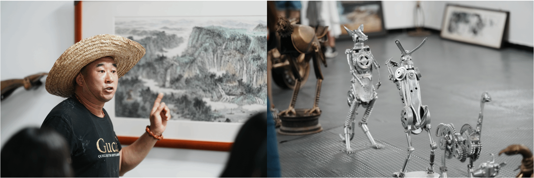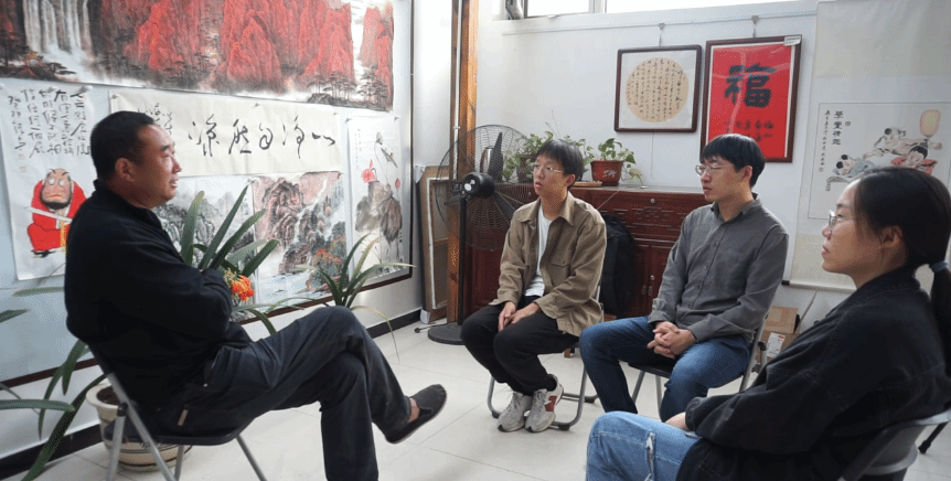 本次共建过程中,鲍书记重点为大家介绍了鲍家铺村的历史变迁、引入书画艺术的发展情况等内容,同时就同学们感兴趣的话题解答了大家提出的疑问,现场氛围融洽活跃。自2020年开始,鲍家铺村引入一批批杰出的艺术家。他们在村内的工作室创作,在村庄的田间地头展示,使整个村庄变成了一个室外画廊。墙壁上的壁画、草地上的雕塑,无一不彰显着创意和独特性。