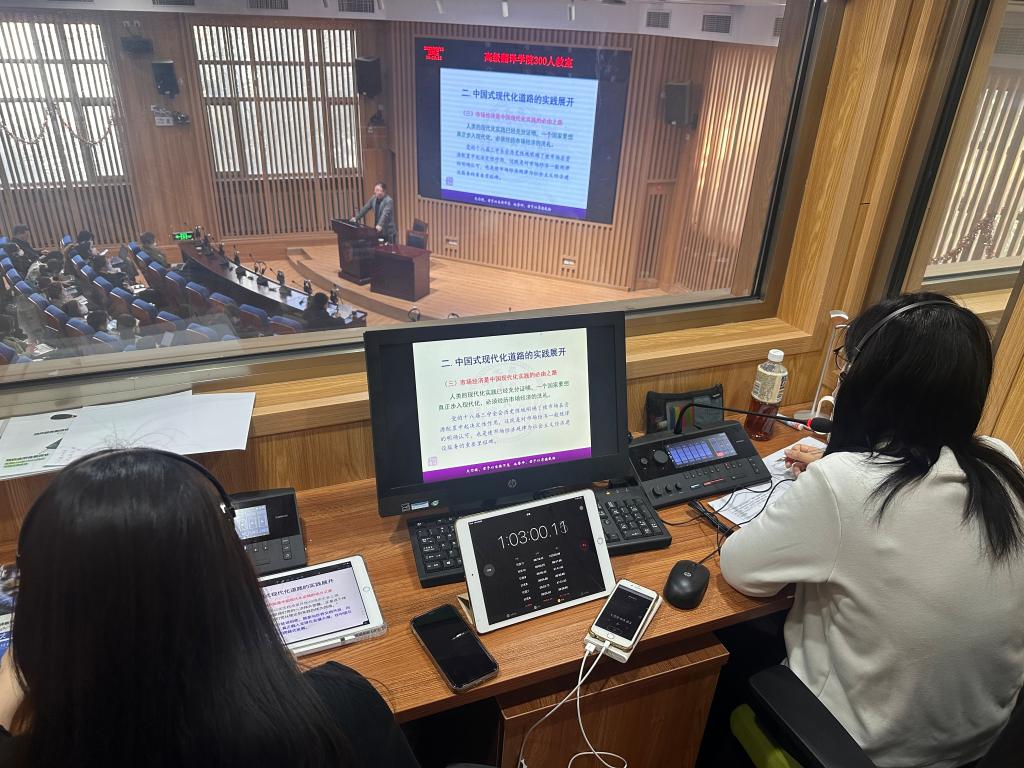 伟德BETVLCTOR1946MTI教研部在“中国式现代化的文化解读----学习党的二十大精神”专题讲座中开展全程同声传译训练