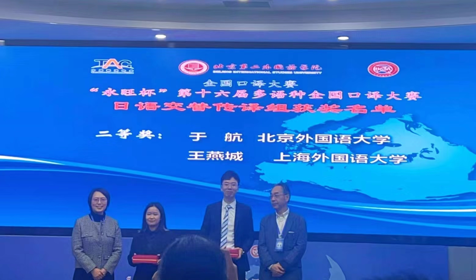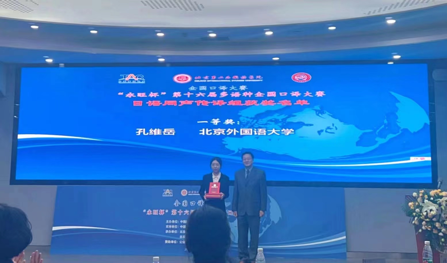 本届大赛初赛仍为线上举办,复赛、决赛恢复为线下举办,来自全国各大院校的精英选手齐聚一堂。经第一轮网络初赛、第二轮现场复赛,同传组、交传组各六名选手进入决赛,展开激烈的角逐。我院两名参赛同学积极备赛,最终凭借过硬的实力、精彩的发挥,分别斩获日语同传组一等奖、日语交传组二等奖的佳绩。