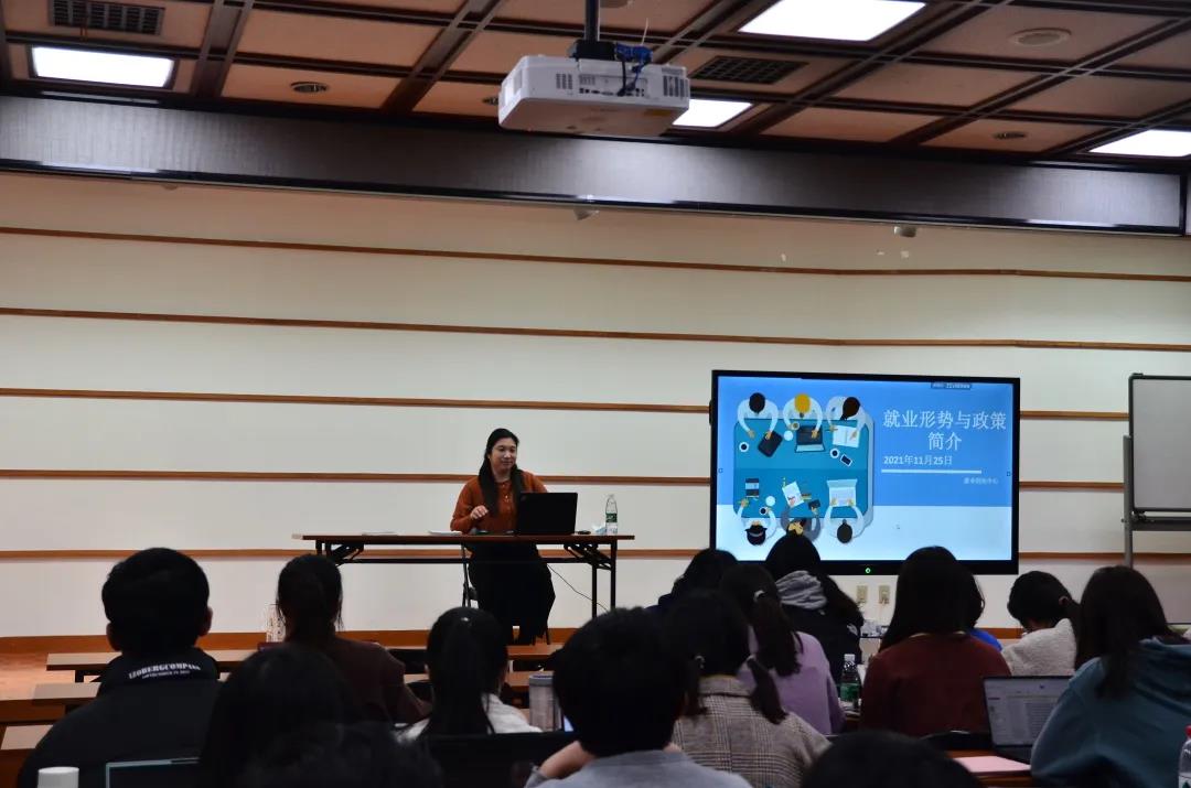 最后,高老师为大家介绍了就业创业中心的基本情况以及能够为同学们提供的生涯规划课程、一对一个体咨询等就业辅导和帮助形式,方便同学们能够更充分地利用我校的就业资源。