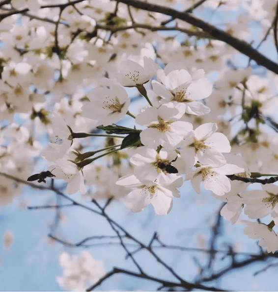 樱吹雪纷飞的清晨,路人驻足观赏,蜜蜂停驻枝头。人与蜜蜂都共享着同一缕被花香浸润的春风。蜜蜂采走花蜜留存春天的味道,我用镜头记录下这春意盎然的瞬间。