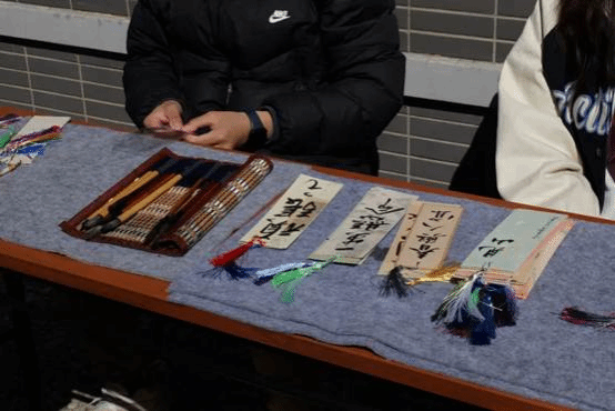 除精彩节目和趣味游戏外,大会还设置了丰富的文化摊位。剑玉、夹乒乓球、中日语绕口令等体验项目,吸引诸位同学们一试身手。书画社负责的书签制作体验区,充满艺术气息。留学生社团现场制作寿司和章鱼小丸子,香气四溢,引得同学们纷纷驻足品尝。