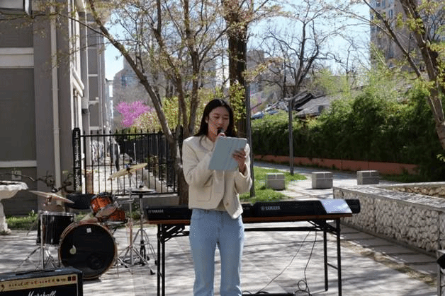马翀羿和程嘉怡两位同学担任主持人,他们以出色的语言能力和风趣的语言风格,把控着现场节奏。陈默林、杨子琛带来的歌曲《Forever Love》为大会拉开帷幕,动人的旋律瞬间点燃观众热情。彼方乐队接连演唱《说爱你》《さくらさくら》,将大会氛围推向高潮。马翀羿带来的《星空へと続く坂道》旋律悠扬。