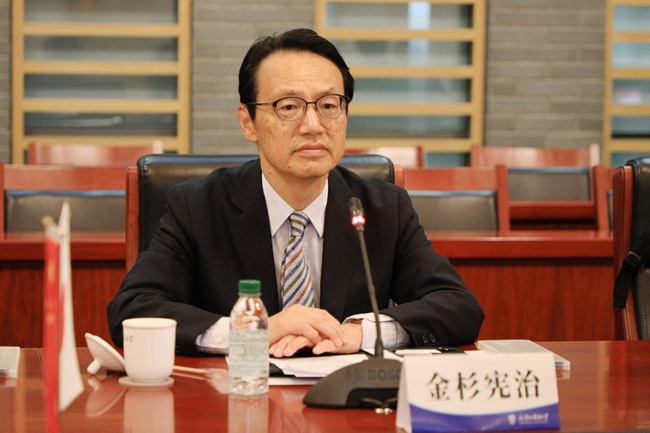 王定华祝贺金杉宪治大使履新,介绍了北外的办学理念、发展成就以及日语学科的建设情况。他表示,北外将持续加强日语学科建设和日本学研究人才培养,增进北外与日本高等教育机构的交流合作,推动两国学者和青年的对话,为中日两国关系发展提供强大的人才和智力支持。