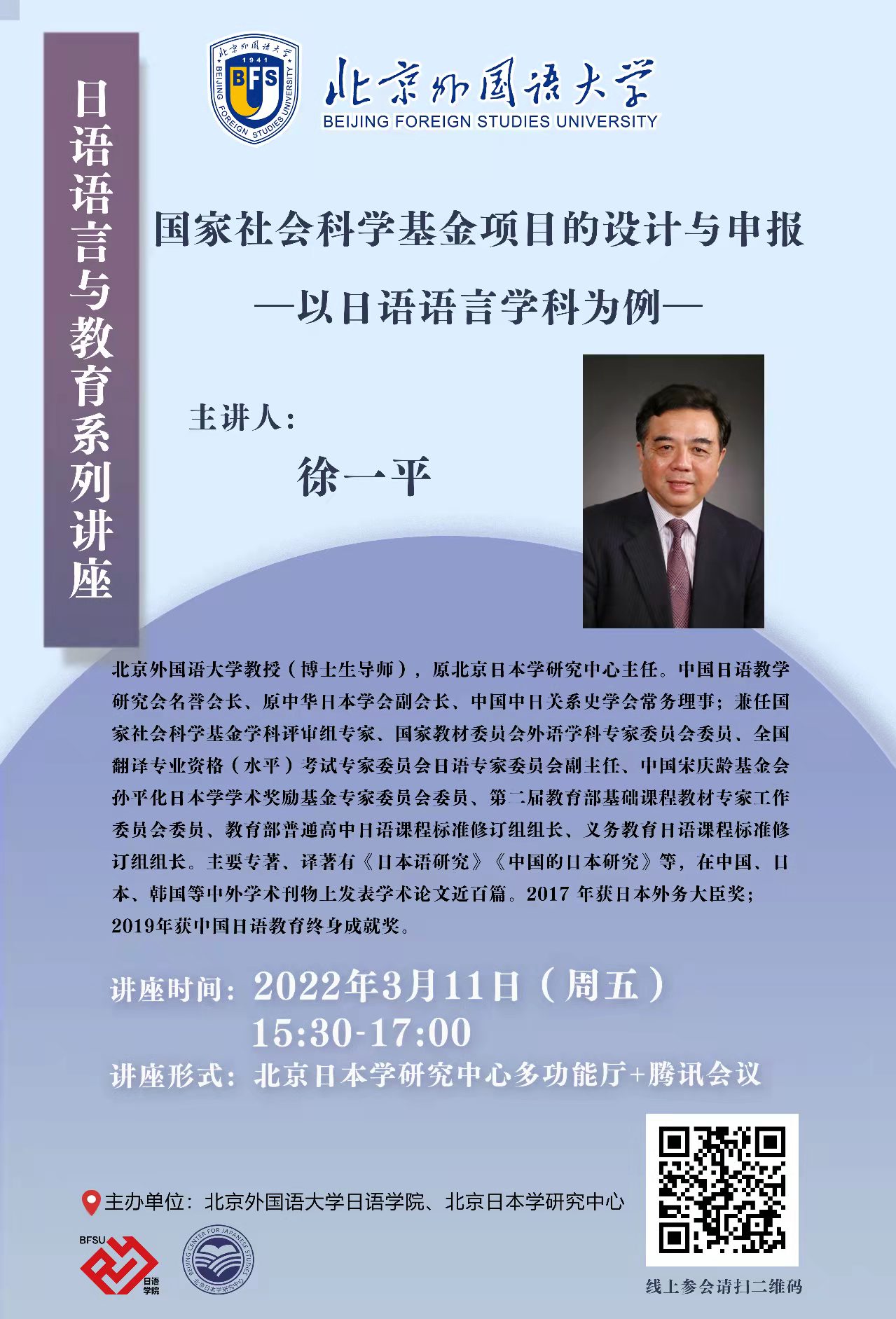 讲座预告 | 日语语言与教育系列讲座(第一讲) 国家社会科学基金项目的设计与申报——以日语语言学科为例