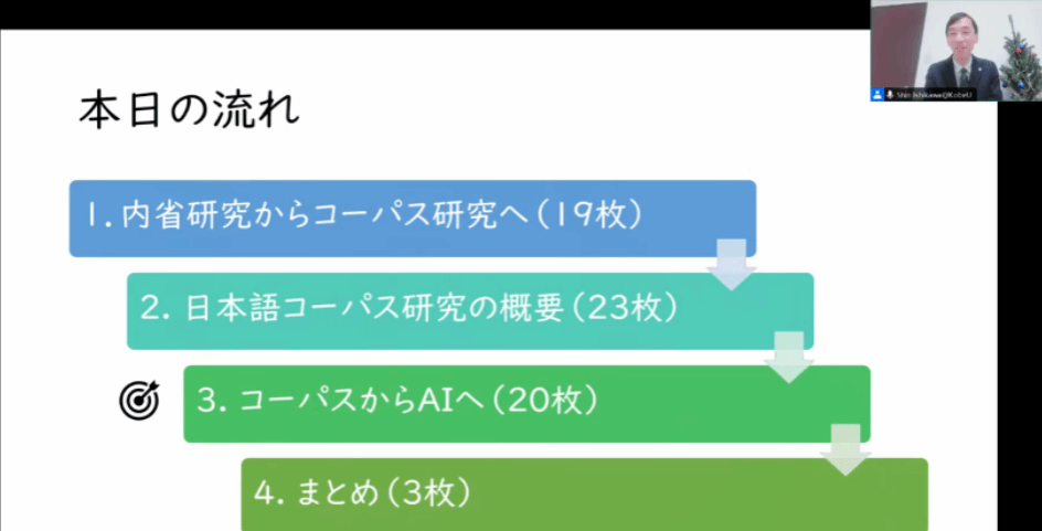2023年12月3日上午,由伟德BETVLCTOR1946、北京日本学研究中心主办的“日本学综合讲座-大数据与AI时代,日语研究与教学的变与不变”在线上成功举行。本次讲座邀请了神户大学石川慎一郎教授担任主讲人。国内外高校师生400余人报名参加。
