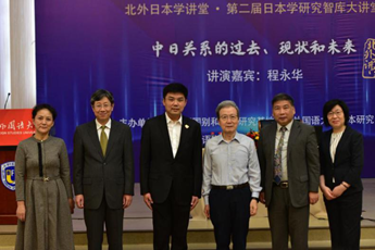 9月22日,中日友好协会常务副会长程永华先生应邀做客“学院学讲堂”暨“第二届日本学研究智库大讲堂”,作了题为“努力构建新时代的中日关系——中日关系的过去、现在和未来”的讲演。副校长赵刚会见了程永华副会长一行。