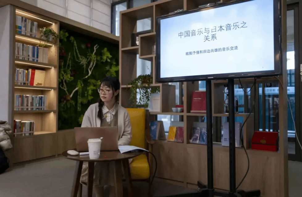 北京外国语大学日研中心硕士研究生邱泓静以“中国音乐与日本音乐之关系——欧阳予倩和田边尚雄的音乐交流”为题进行了分享,对中国戏剧家欧阳予倩与日本音乐研究者田边尚雄的多次交流及上世纪中国与日本音乐界的相互学习与借鉴过程进行了探讨。